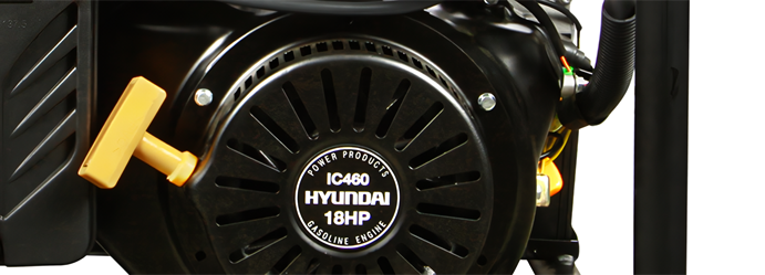 Генератор работает от оригинального 4-тактного бензинового двигателя Hyundai IC460 мощностью 18,1 л.с. с верхним расположением клапанов. Максимальной выходной мощности 8 кВт достаточно для питания частного дома или дачи. Двигатель экономно потребляет топливо, поэтому полной заправки бака объемом 25 л хватает до 8,9 ч работы без остановки при нагрузке в 75%.