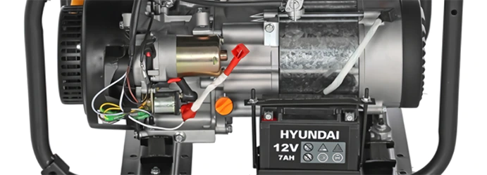 Двигатель в генераторе Hyundai HHY 3020FE заводится как в автомобиле – нужно вставить ключ в замок зажигания и повернуть его. Электростартер работает от встроенного аккумулятора. Батарея сама заряжается при работе станции. После долго простоя или в других случая можно завести генератор и обычным способом – потянув за тросик ручного стартера. Шнур вытягивается плавно и больших усилий не требует.