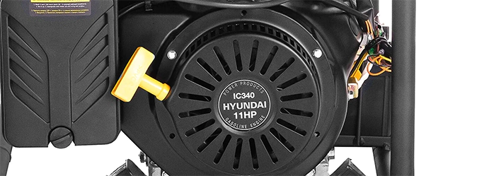 Бензиновая электростанция оборудована фирменным корейским двигателем Hyundai IC340 с верхним расположением клапанов. В конструкции не используется пластик, все шестерни выполнены из металла, что обеспечивает их высокую износостойкость. Производство осуществляет китайская фабрика Maifeng под контролем Hyundai. Это гарантирует высокое качество продукции.