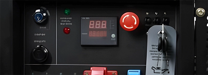 Генератор Hyundai DHY 12000LE-3 оснащен четырехтактным двигателем мощностью 20 л.с. и топливным баком объемом 25 л. Это обеспечивает непрерывную работу в течение 10 часов при 50%-ной нагрузке. Запуск осуществляется электростартером с ключом зажигания, как в автомобиле. Для подключения потребителей на лицевой панели предусмотрено две розетки: 400 В, 16 А и 230 В, 16 А. Также есть выход 12 В для зарядки аккумуляторов.