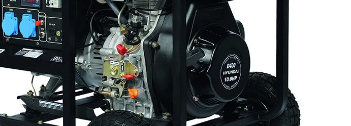Hyundai DHY 6000LE оснащен двигателем серии IC (industrial commercial) объемом 418 см³ и мощностью 10 л.с. Инжекторная система прямого впрыска подает топливную смесь напрямую в камеру сгорания, что существенно сокращает расход дизеля и количество вредных выхлопов. Запустить мотор можно как вручную, так и с помощью электростартера.