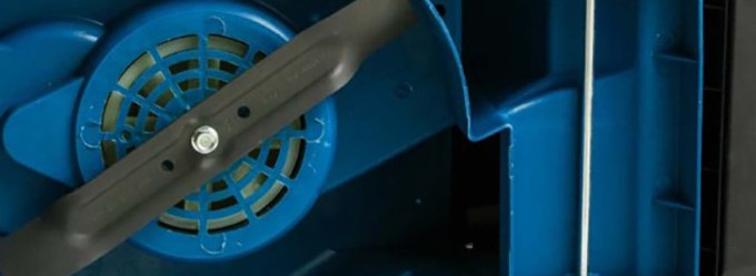 Нож Hyundai LE 3200 аэродинамической формы вращается со скоростью 3400 об/мин. Он обеспечивает ровный срез как густой поросли, так и мягкой молодой травы. Во время его вращения создается мощный воздушный поток, который приподнимает растительность, обеспечивая аккуратную и равномерную стрижку.