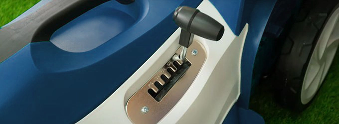 В Hyundai LE 4210 высота реза настраивается вручную при помощи 6-ступенчатого рычага. Он расположен в верхней передней части корпуса, позволяет задавать значение от 20 до 70 мм. Вы можете стричь газоны, к которым есть определенные требования по длине травы. Например, футбольные поля.