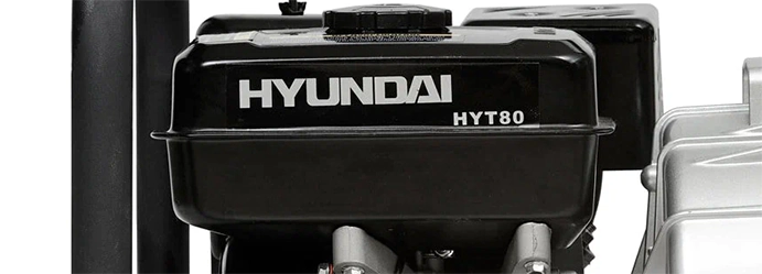 Благодаря большому диаметру входного и выходного отверстий бензиновая мотопомпа Hyundai быстро справляется с перекачкой даже сильно загрязненной воды с включениями размером до 17 мм. Одной заправки топливного бака емкостью 3,6 л хватает на использование устройства в течение 10 ч.