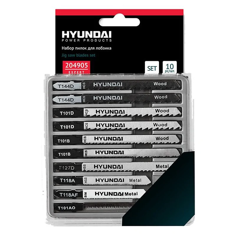Пилки для лобзиков по дереву, металлу и пластику Hyundai 204905, 10 шт в наборе