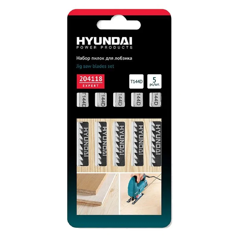 Пилки для лобзиков для мягкого дерева T144D Hyundai 204118, 5 шт в наборе