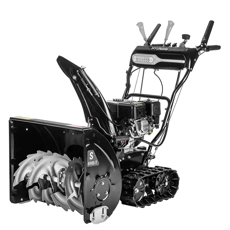 Мощный самоходный бензиновый снегоуборщик Hyundai S 6165-T пригодится владельцам загородных домов для уборки больших и сложных участков, а также поможет расчистить снег в гаражном кооперативе, на тротуарах, парковке перед магазином т.п.