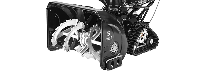 Гусеницы позволяют не буксовать в снегу и на льду, обеспечивают устойчивость снегоуборочной машины на склонах и неровных поверхностях. Для поворота в нужную сторону предусмотрена блокировка дифференциала. Для этого достаточно просто зажать курок на рукоятке с соответствующей стороны.
