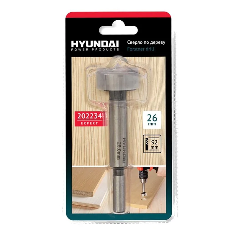 Ключевые характеристики сверла Форстнера по дереву Hyundai 26X92 мм.
