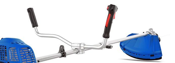 Удерживать и направлять инструмент удобно благодаря широкой рукояти велосипедного типа. Равномерно распределить нагрузку на руки, плечи и спину помогает ремень ранцевого типа. Кнопка включения привода ножа расположена на рукоятке прямо под пальцами и всегда доступна.