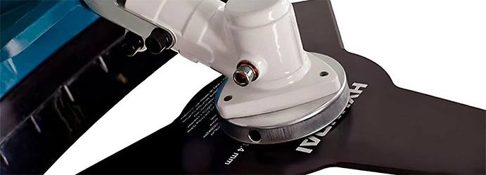 Катушка с леской толщиной 2,8 мм оптимальна для скашивания газонной и обычной полевой травы. Для работы с жестким сорняками, сухостоем и кустарниковой порослью лучше установить на триммер трехлопастный стальной нож с лезвиями толщиной 1,3 мм, который идет в комплекте.